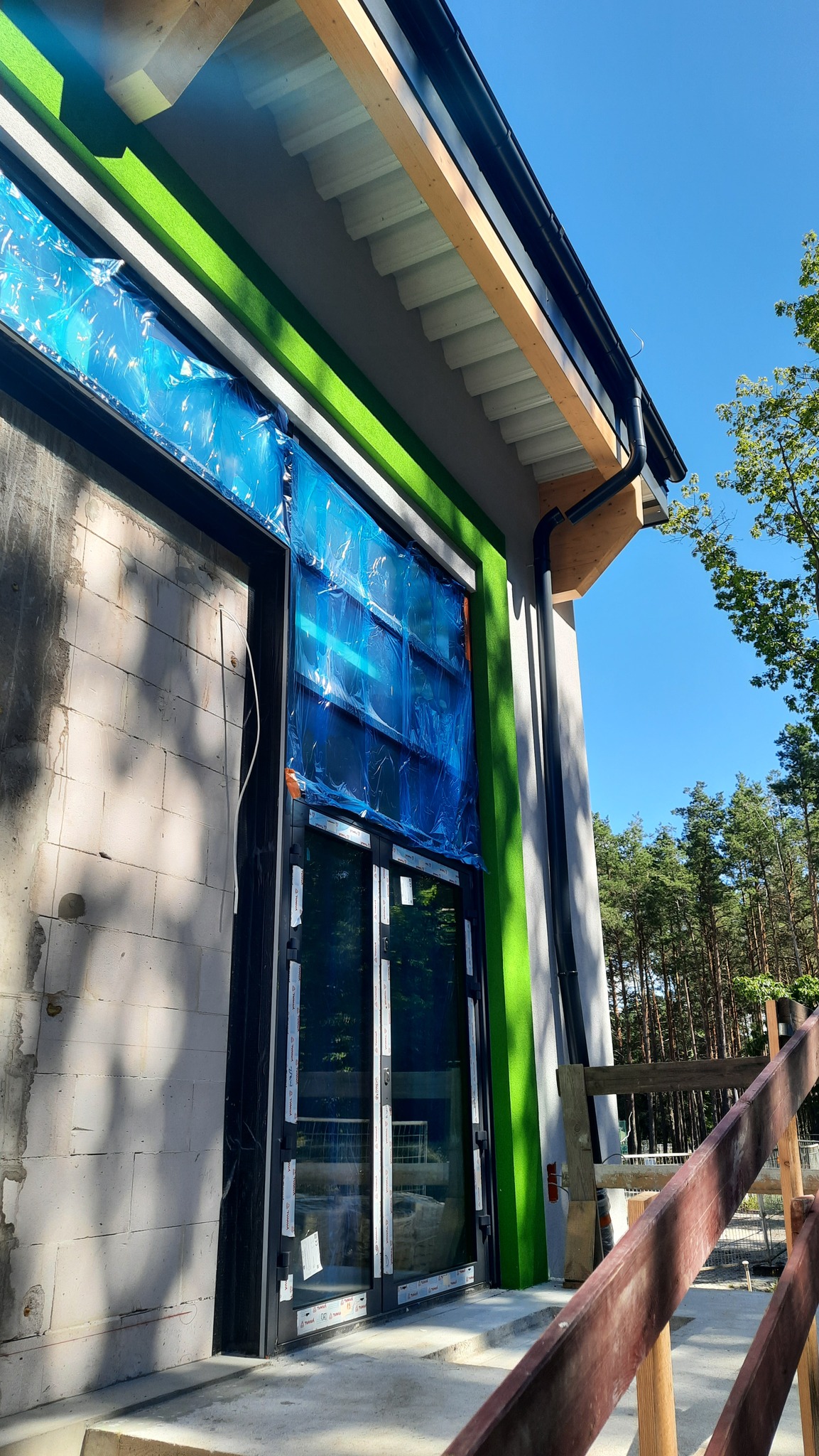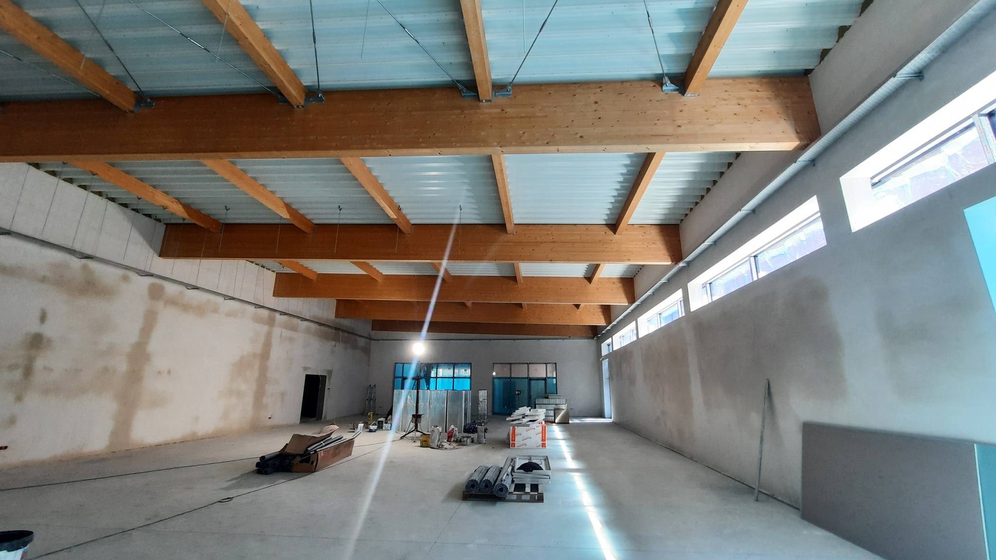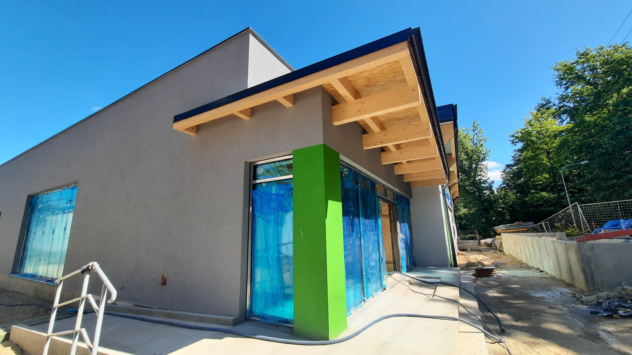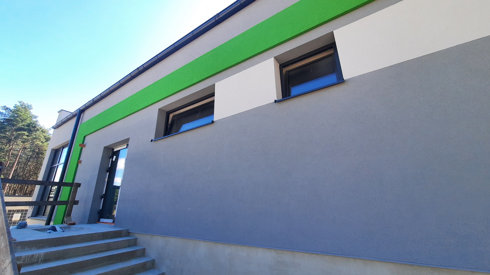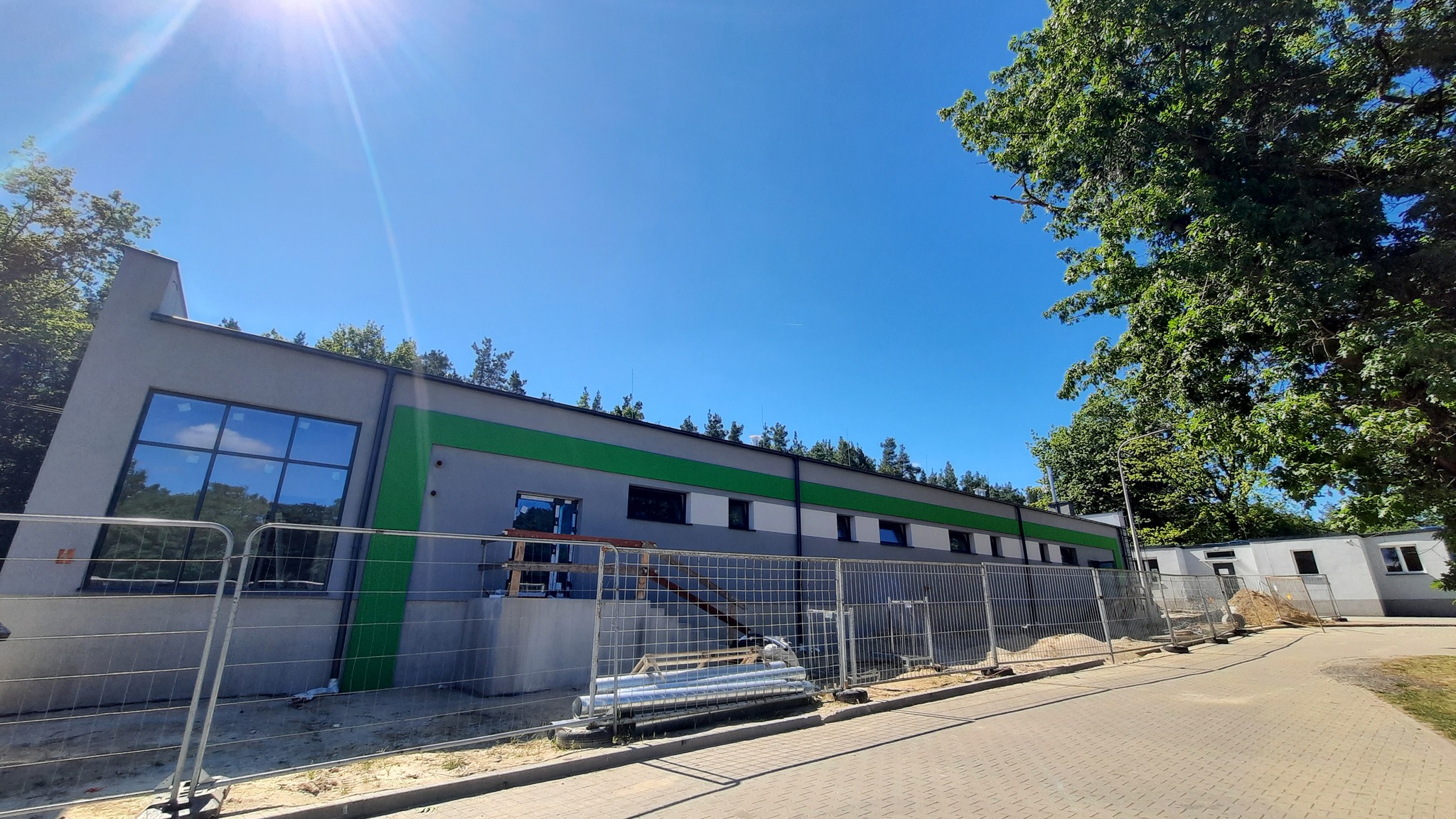 Na dachu hali znalazły się już panele fotowoltaiczne, które pozwolą na częściowe zasilanie obiektu energią odnawialną. Wkrótce rozpoczną się także prace w otoczeniu budynku – powstaną tam utwardzone parkingi dla użytkowników hali.