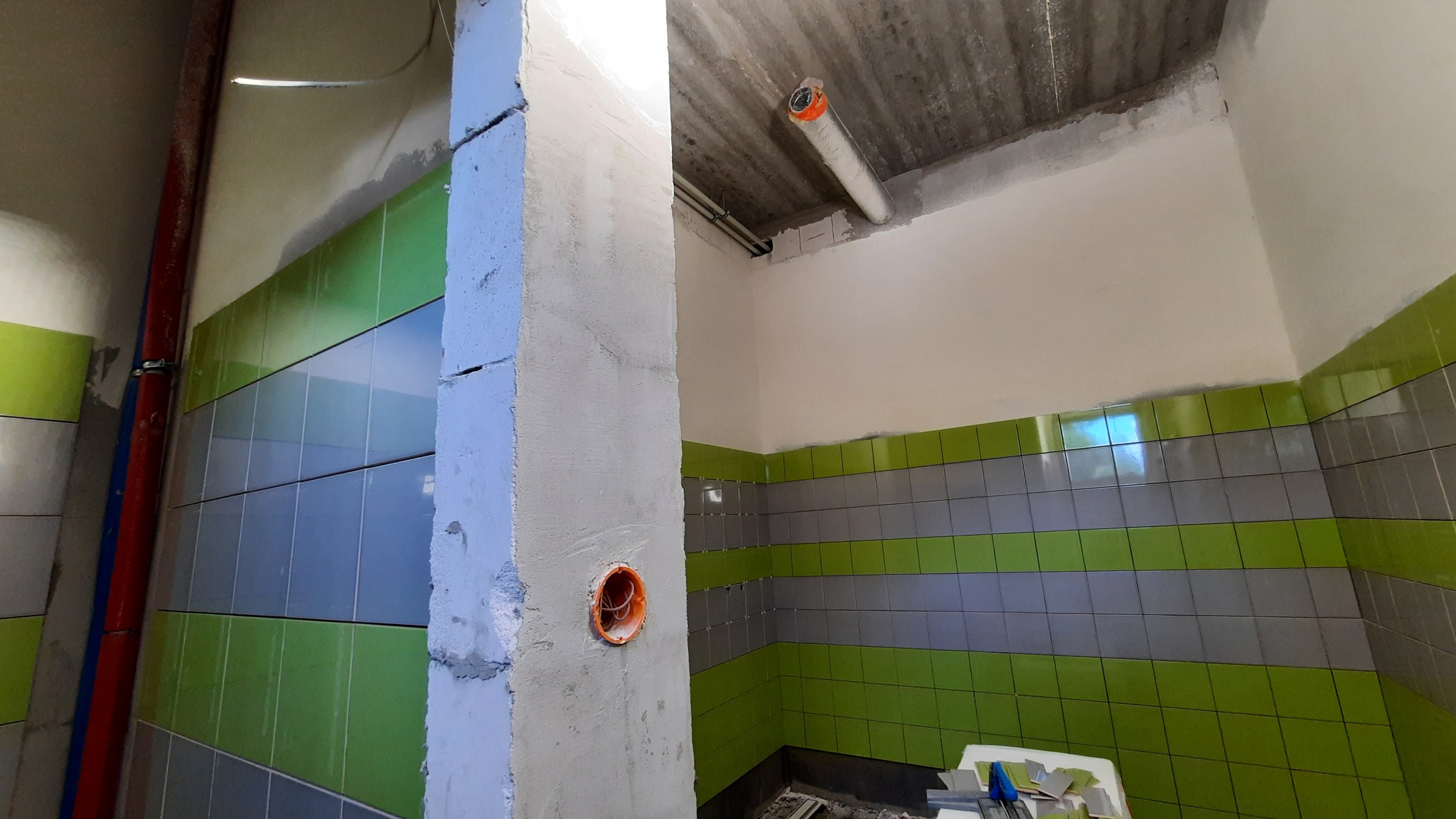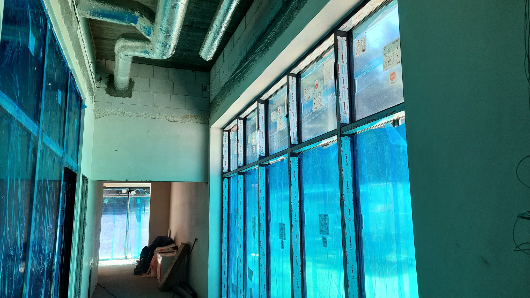 Budynek nabiera już finalnego kształtu, wykonano niemal całą elewację, a wewnątrz trwają intensywne prace wykończeniowe. Robotnicy układają glazurę i przygotowują ściany do malowania. Równolegle montowane są instalacje elektryczne, grzewcze, wodociągowe i teletechniczne, a także okładziny akustyczne, które zapewnią odpowiednie warunki podczas zawodów sportowych i wydarzeń.