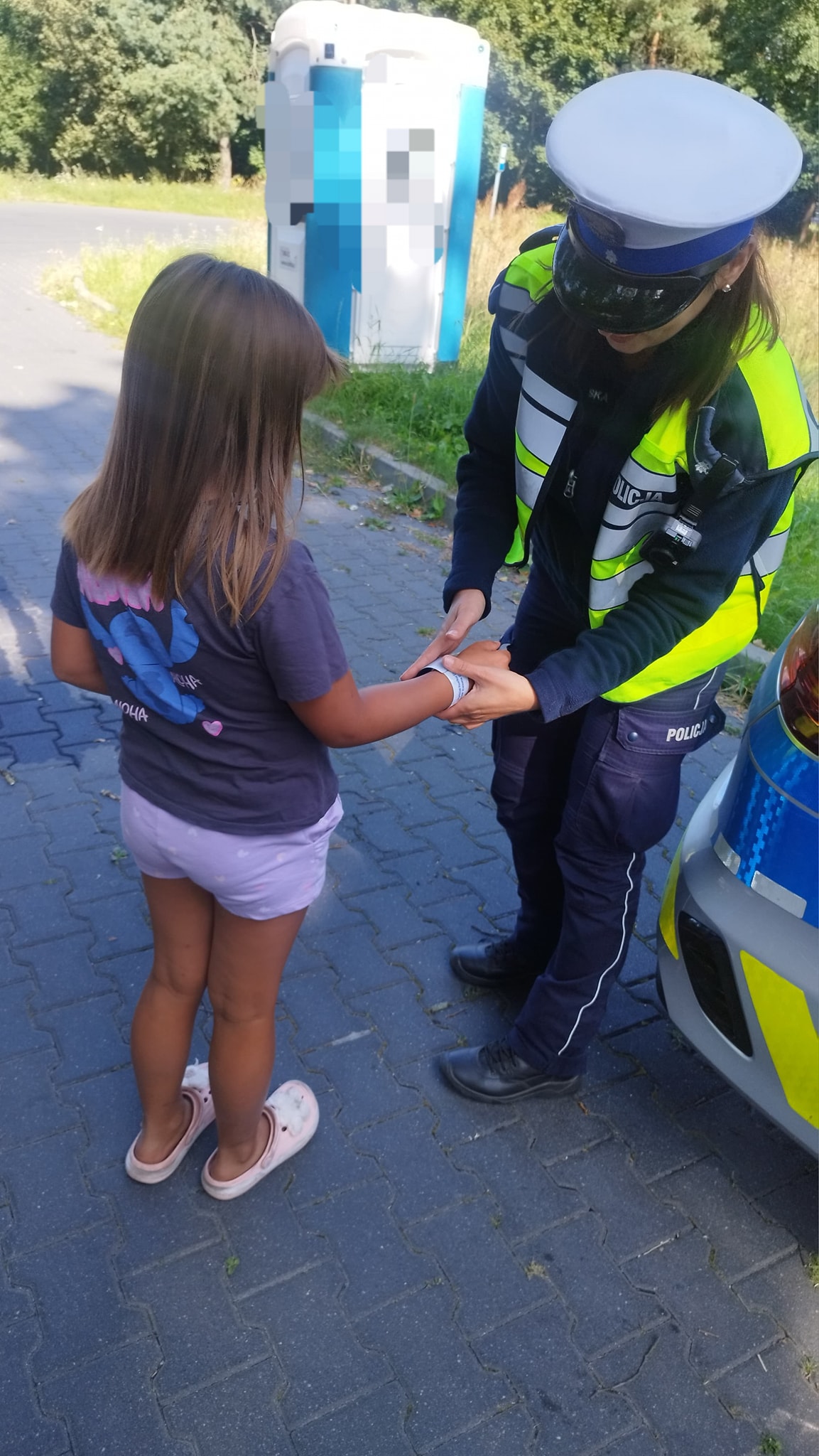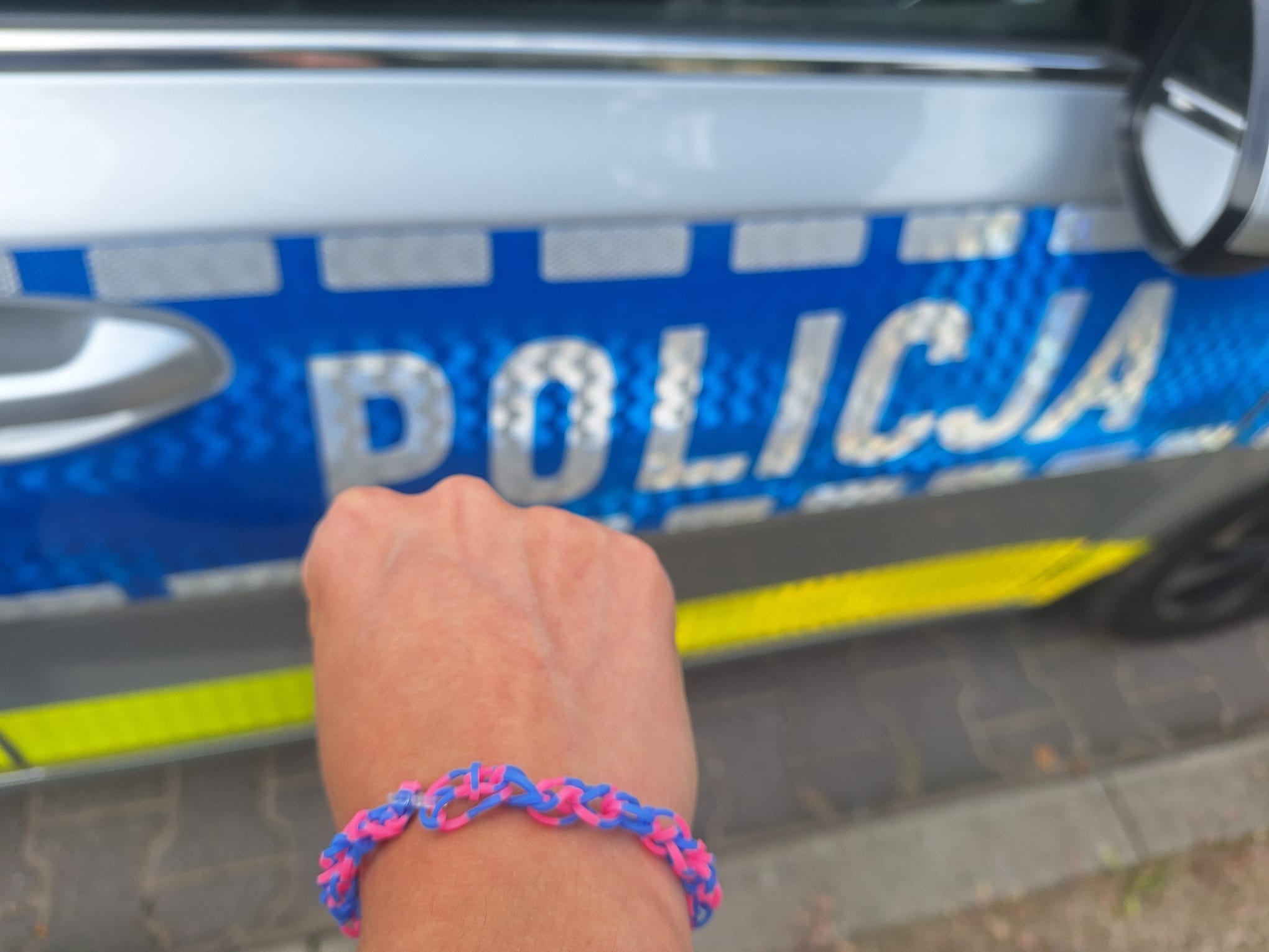 Do policjantów ruchu drogowego podeszła mała dziewczynka wraz z mamą. W rękach trzymała coś, co sprawiło, że, jak sami funkcjonariusze przyznali, „zmiękły im nogi w twardych butach”. Podarowała mundurowym rysunek oraz własnoręcznie zrobioną bransoletkę.