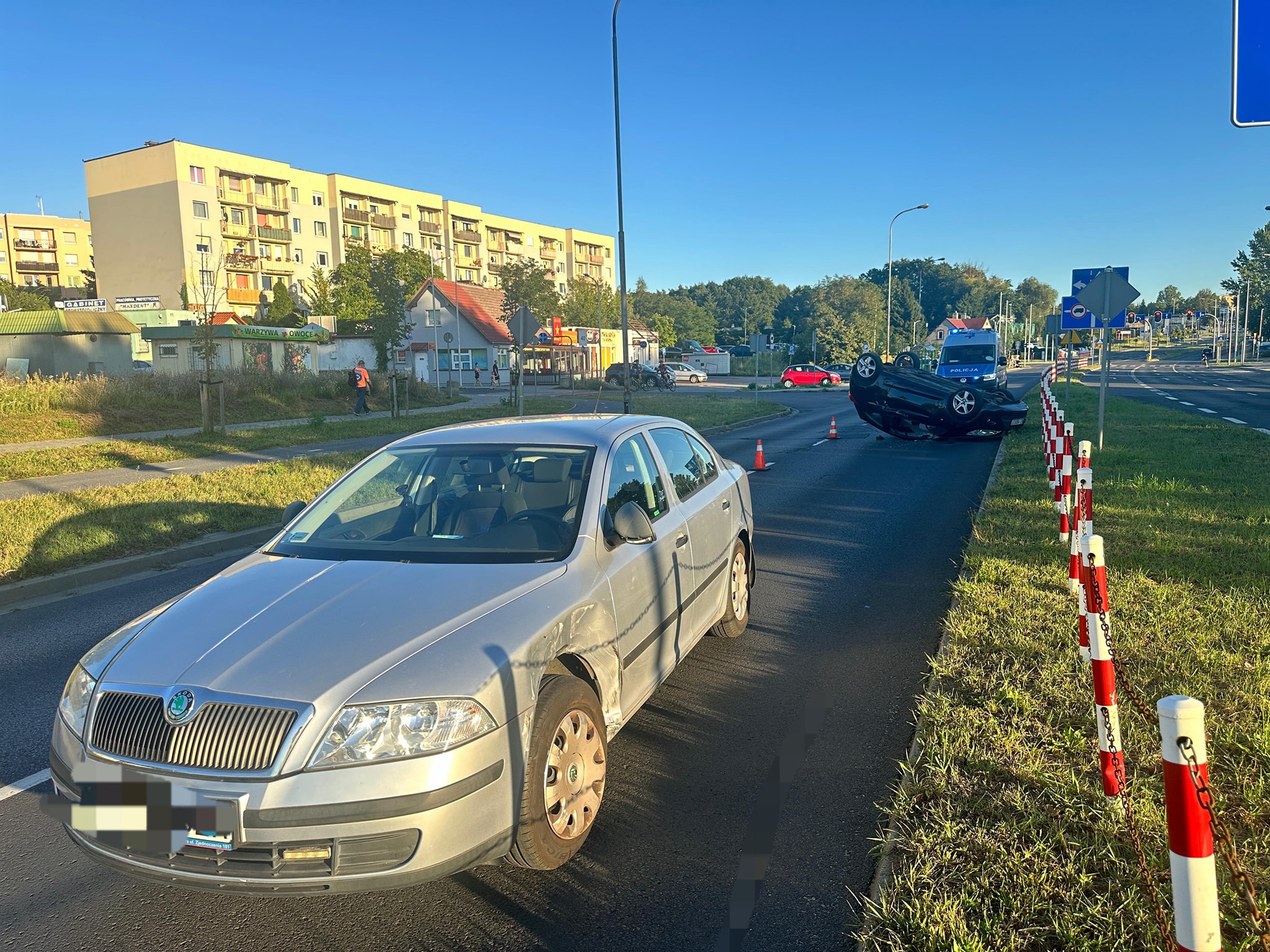 Do groźnie wyglądającego zdarzenia drogowego doszło na skrzyżowaniu ulic Technologów i Batorego. 74-letni kierowca Skody, wyjeżdżając z ulicy podporządkowanej, nie ustąpił pierwszeństwa przejazdu 33-letniemu kierowcy Forda. W wyniku zderzenia Ford przewrócił się na dach, co widać na zdjęciach z miejsca zdarzenia.