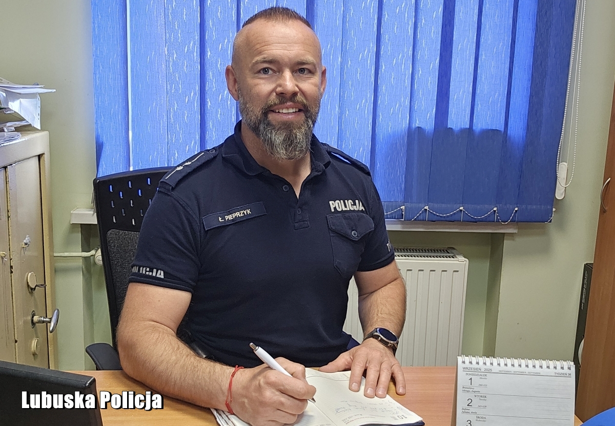 Aspirant Łukasz Pieprzyk z Komendy Powiatowej Policji we Wschowie od wielu lat regularnie oddaje krew, niosąc tym samym pomoc potrzebującym. Jego postawa to przykład, że pomaganie można mieć - dosłownie - „we krwi”.