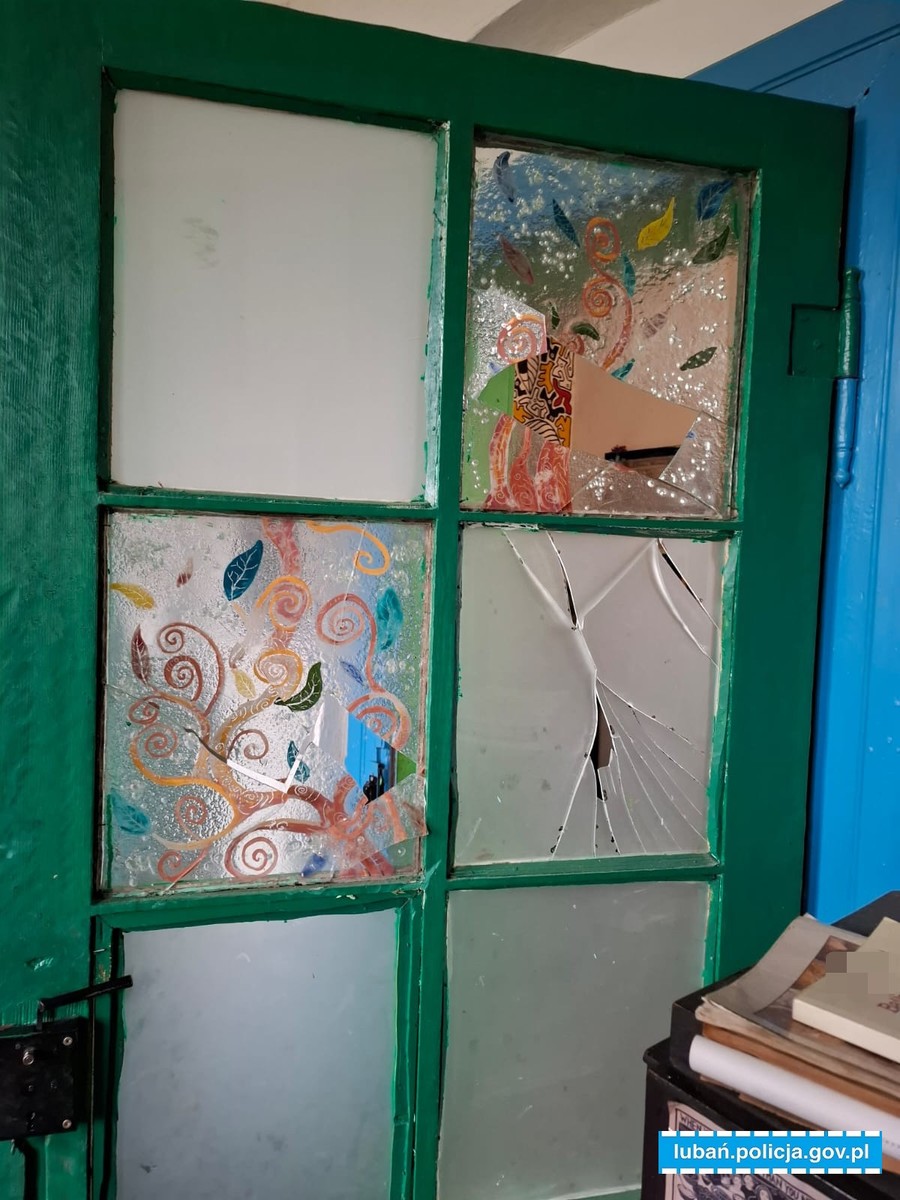 Z relacji zgłaszającej wynikało, że znajomy kobiety chciał wymusić nocleg i pomimo próśb nie chciał odejść od drzwi. W pewnym momencie zaczął w nie uderzać, powodując znaczne zniszczenia. Wybił 3 szyby oraz uszkodził zamek z klamką w zabytkowych drzwiach, gdzie suma strat opiewała na kwotę 900 zł. Oddalając się miał powiedzieć, że odbierze sobie życie. Kobieta natychmiast wezwała Policję.
