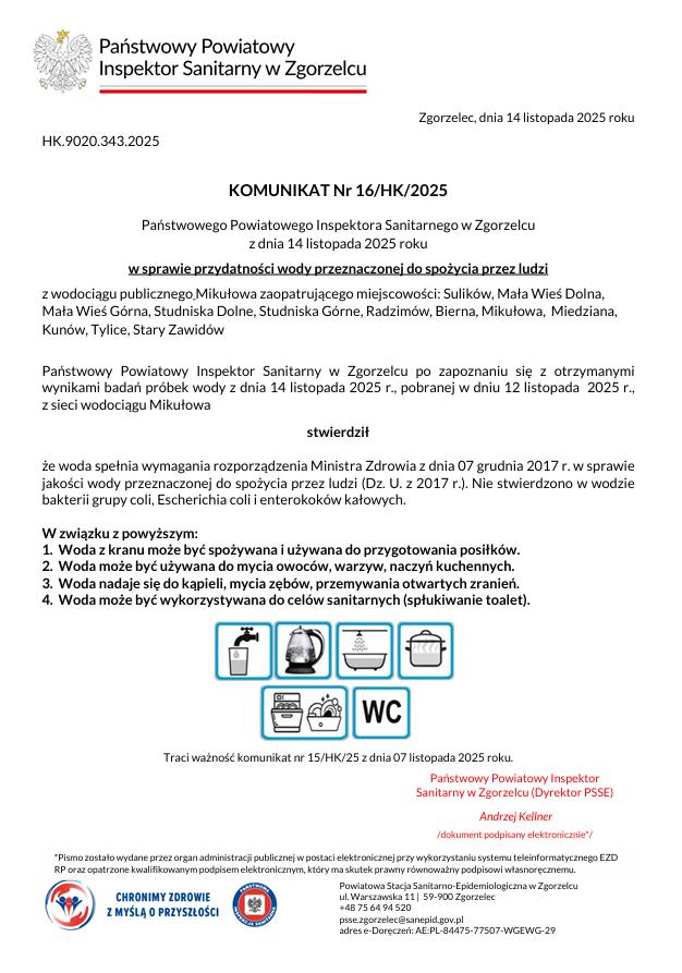 W opublikowanym komunikacie Państwowej Inspekcji Sanitarnej jasno wskazano, że woda spełnia obowiązujące normy, a wszystkie działania podjęte przez Suplaz przyniosły zamierzony efekt. Oznacza to, że mieszkańcy mogą bez obaw korzystać z wody w swoich domach.