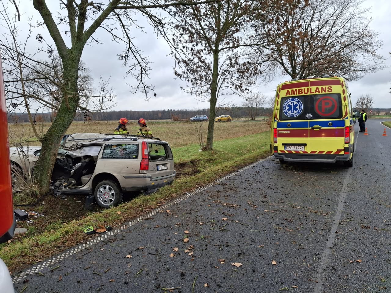 Po przybyciu na miejsce strażacy zastali rozbite auto, w którym znajdowała się jedna osoba poszkodowana. Ze względu na deformację pojazdu konieczne było użycie specjalistycznego sprzętu hydraulicznego, aby wydostać kierowcę z wnętrza samochodu.