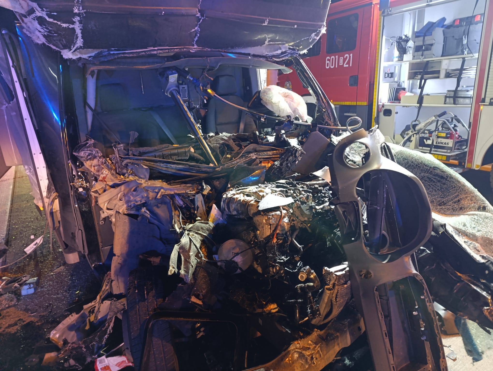 19 listopada 2025 r., krótko po godzinie 17:00 do Stanowiska Kierowania Komendanta Powiatowego PSP w Zgorzelcu wpłynęło zgłoszenie o poważnym wypadku drogowym na autostradzie A4, na 2,1 kilometrze trasy w kierunku Niemiec. Z przekazanych informacji wynikało, że auto dostawcze uderzyło w tył naczepy samochodu ciężarowego.