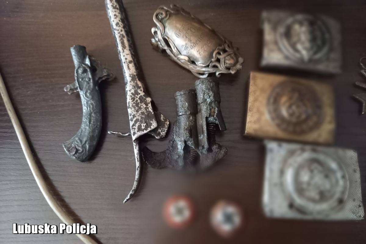 W czwartek (20 listopada) policjanci służby kryminalnej prowadzili przeszukanie w budynku mieszkalnym jednej z miejscowości powiatu. Podczas czynności ujawnili fragmenty broni z widocznymi śladami korozji oraz kilkanaście przedmiotów takich jak klamry od paska, przypinki metalowe, medaliony oraz kastet. Na części przedmiotów widoczne są symbole faszystowskie. Mogą one pochodzić z czasu II Wojny Światowej. 40-letni właściciel posesji przyznał, że znalazł te przedmioty przy pomocy elektronicznego detektora do wykrywania metalu. Wszystkie ujawnione rzeczy zostały zabezpieczone i będą poddane ocenie biegłego z zakresu ochrony zabytków. Policjanci ustalili, że mężczyzna nie posiada wymaganych pozwoleń na prowadzenie poszukiwań.