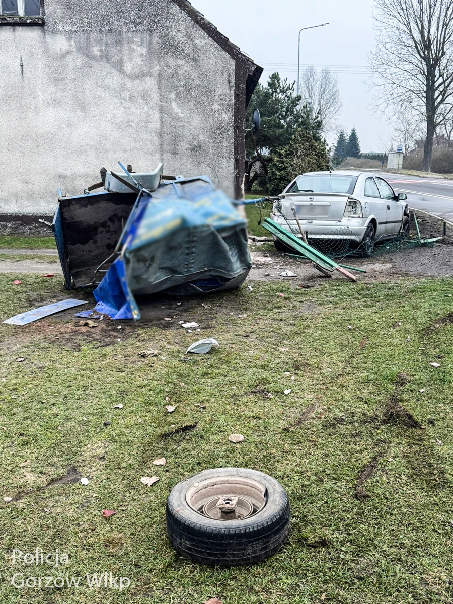 Jak ustalili funkcjonariusze, kierujący jechał osobowym oplem z doczepioną przyczepą, w której przewoził metalowe rury. W pewnym momencie stracił panowanie nad pojazdem, zjechał na pobocze, wjechał w ogrodzenie jednej z posesji, a następnie uderzył w ścianę budynku. Siła uderzenia mogła doprowadzić do znacznie poważniejszych skutków, szczególnie że przewożony ładunek stwarzał dodatkowe ryzyko. Policjanci podkreślają, że tylko ogromne szczęście sprawiło, że w wypadku nikt nie odniósł obrażeń.