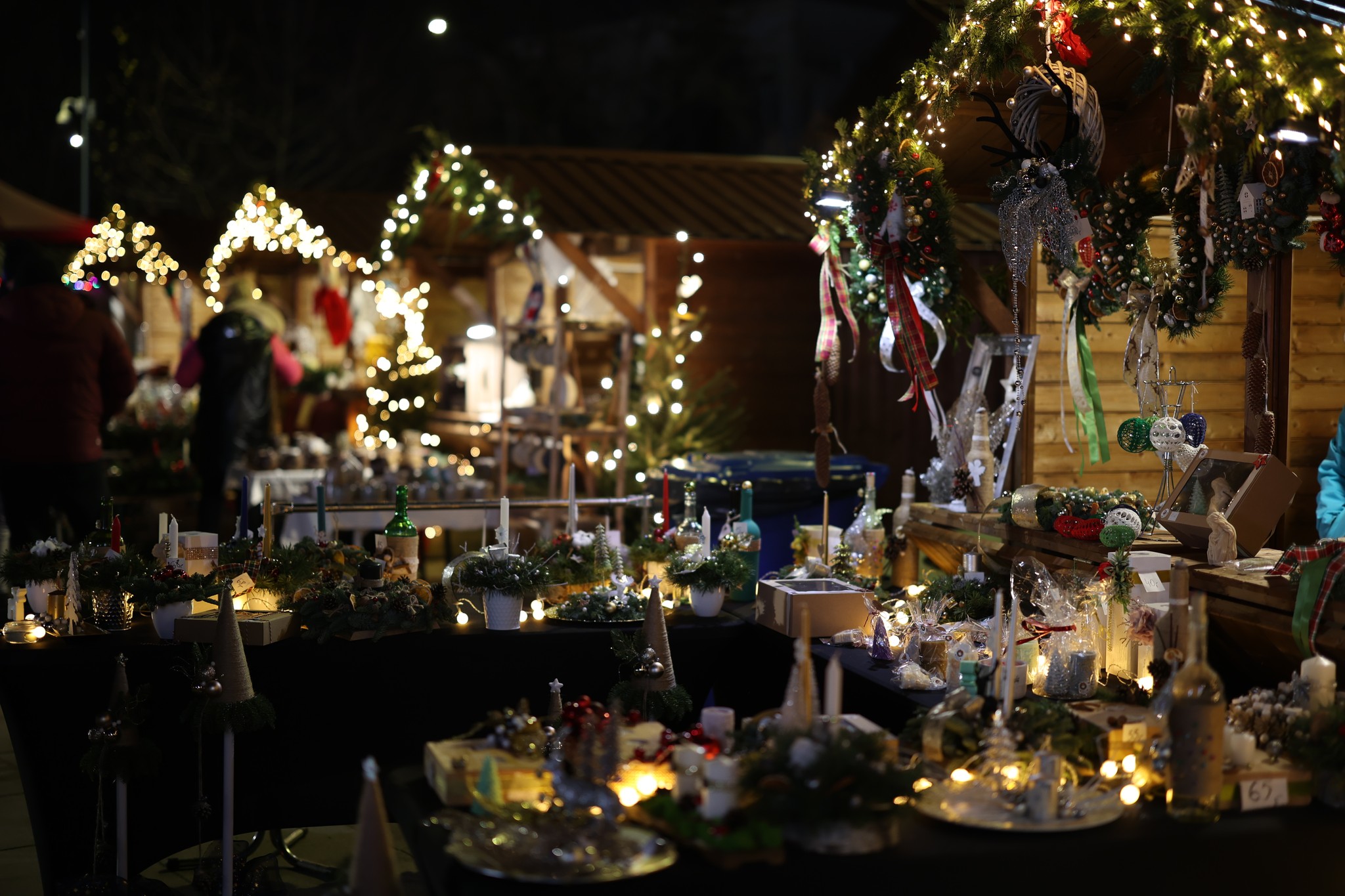 • urokliwe stoiska z rękodziełem i świątecznymi ozdobami,