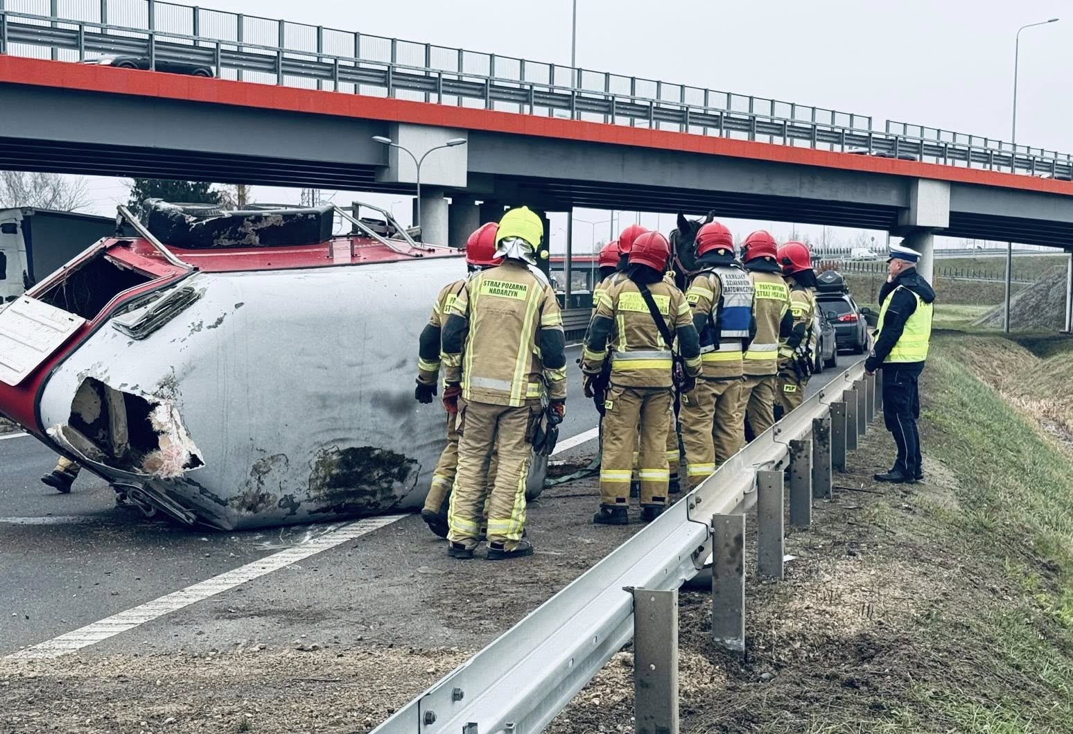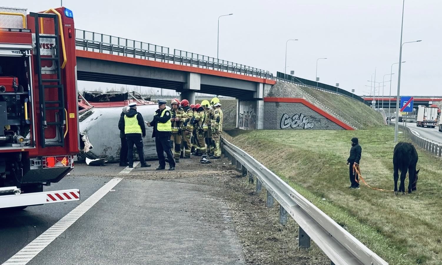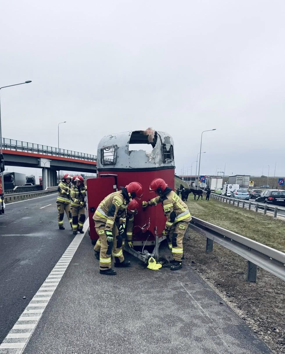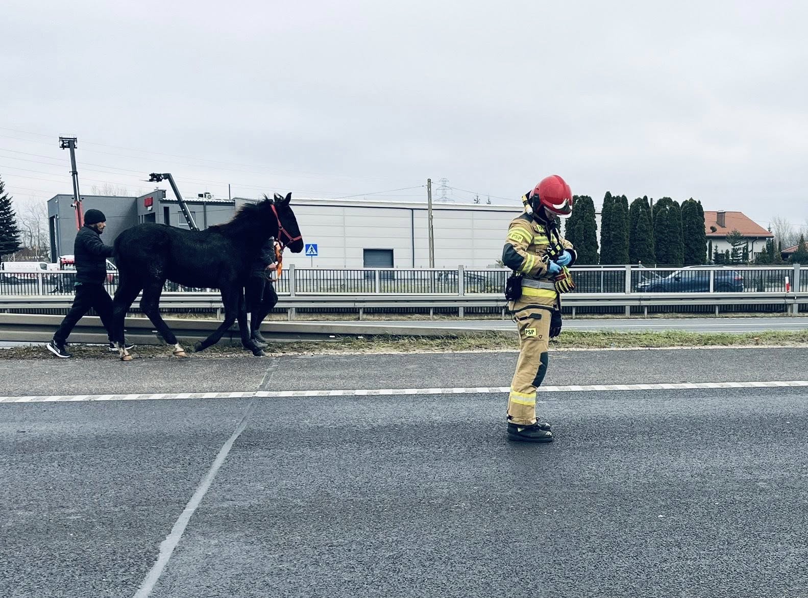 Służby otrzymały zgłoszenie o przewróconej przyczepie do przewozu koni. W chwili zdarzenia w środku znajdowały się dwa zwierzęta. Po przybyciu na miejsce strażacy zastali źrebaka, który na szczęście zdołał samodzielnie wydostać się z uszkodzonej przyczepy. Większej pomocy wymagała natomiast klacz - zestresowana i unieruchomiona, nie była w stanie wyjść o własnych siłach.