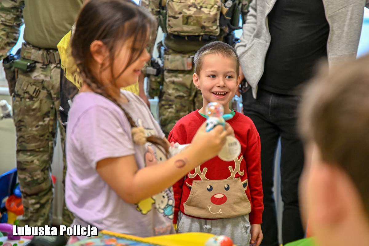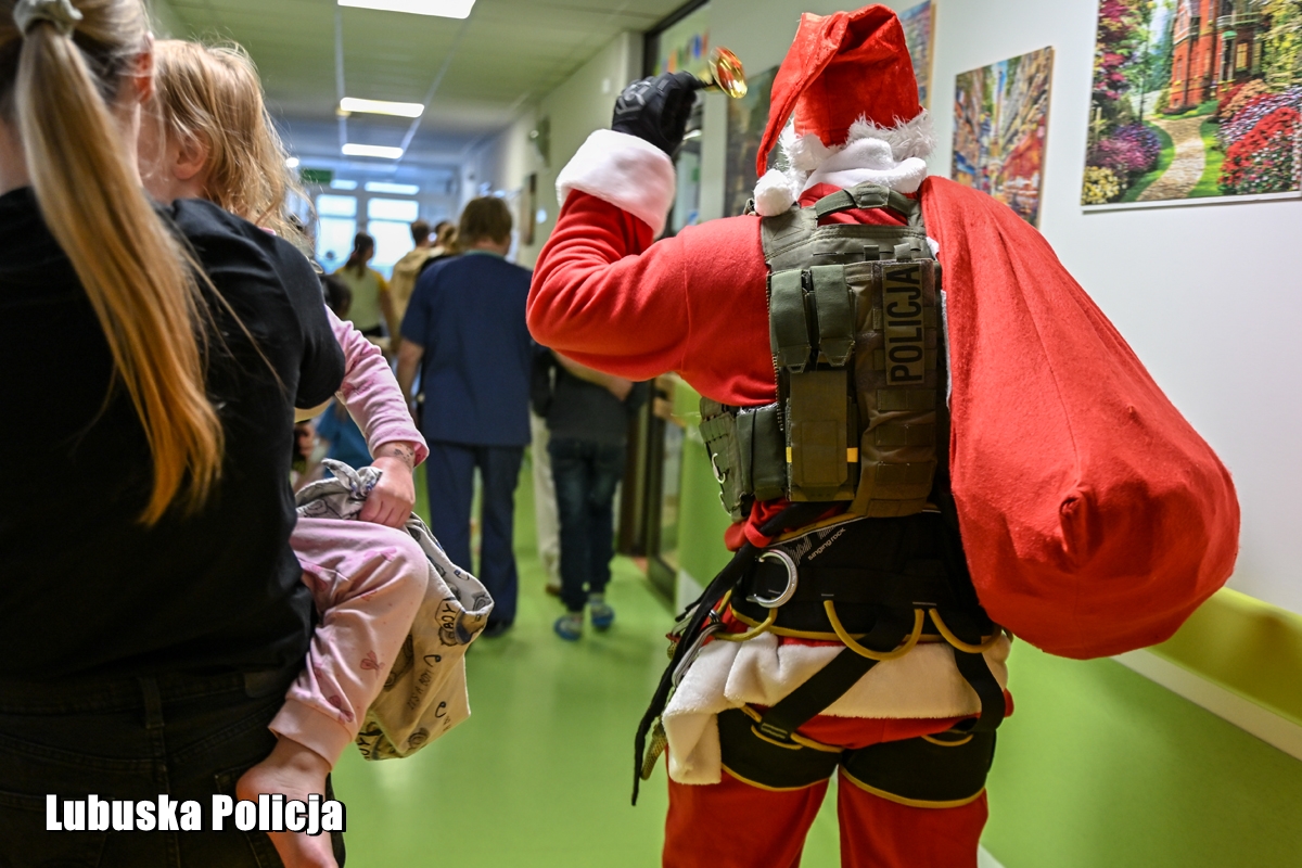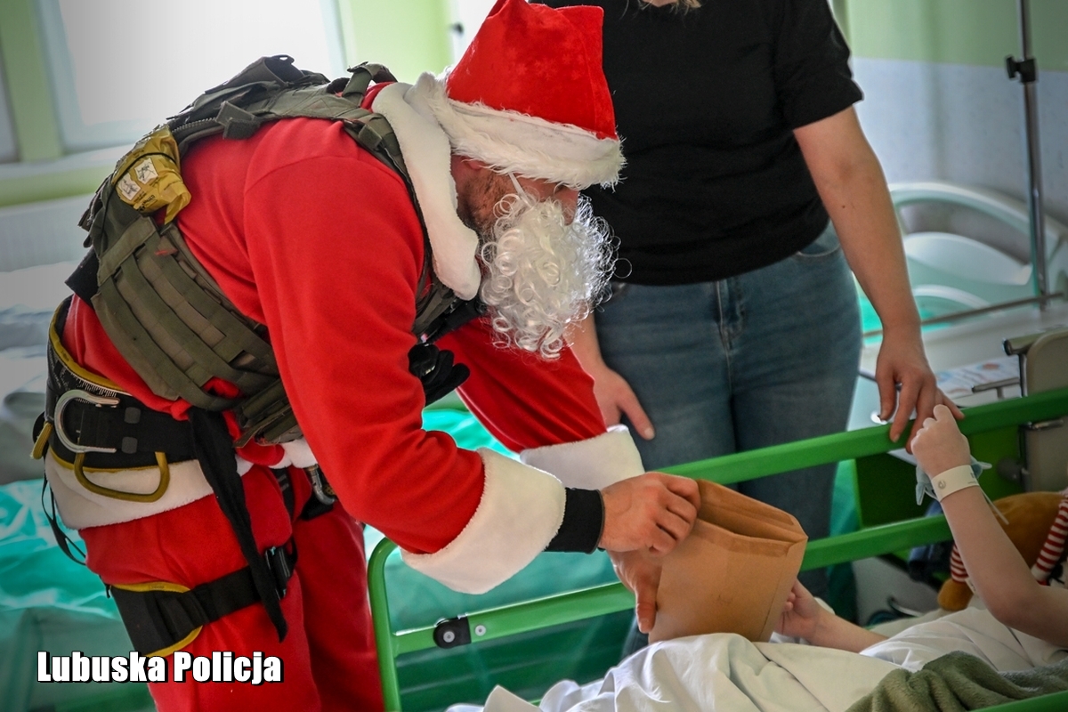 W czwartek (4 grudnia) lubuscy kontrterroryści razem z Komendantem Wojewódzkim Policji w Gorzowie Wielkopolskim inspektorem Jerzym Czebreszukiem pojawili się na oddziale pediatrii gorzowskiego szpitala. Twardzi, doświadczeni profesjonaliści pokazali, że za kuloodpornymi kamizelkami kryją się wielkie, wrażliwe serca. Zorganizowali zbiórkę słodyczy i maskotek, a następnie przekazali je dzieciom przebywającym na oddziale. Jeden z nich postanowił dodatkowo zafundować maluchom widowiskowy pokaz - wejść na salę szpitalną przez okno, opuszczając się po linie z dachu budynku. Widok Świętego Mikołaja, zjeżdżającego do środka jak filmowi bohaterowie, wywołał wśród małych pacjentów prawdziwy entuzjazm. To był jednak dopiero początek atrakcji. Policjanci pokazali najmłodszym wyposażenie oraz różne jednostki broni, opowiadając o specyfice swojej służby. Dla dzieci była to nie tylko zabawa, lecz także okazja, by z bliska poznać funkcjonariuszy, których na co dzień mogą kojarzyć się z akcjami o najwyższym stopniu ryzyka. Uśmiechy pojawiły się również na twarzach samych policjantów.