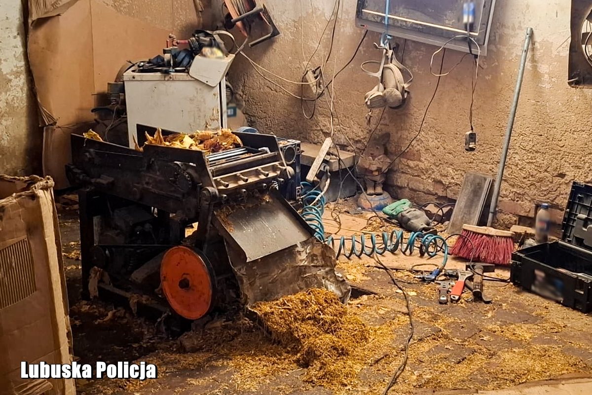 Policjanci zlikwidowali nielegalną wytwórnię wyrobów tytoniowych. W budynku gospodarczym na terenie powiatu żagańskiego funkcjonariusze znaleźli maszyny produkcyjne oraz blisko trzy tony tytoniu w formie liści i gotowej krajanki. Do sprawy zatrzymano 55-letniego mężczyznę. Straty Skarbu Państwa z tytułu nieodprowadzonego podatku akcyzowego i VAT oszacowano na prawie 3 miliony złotych.