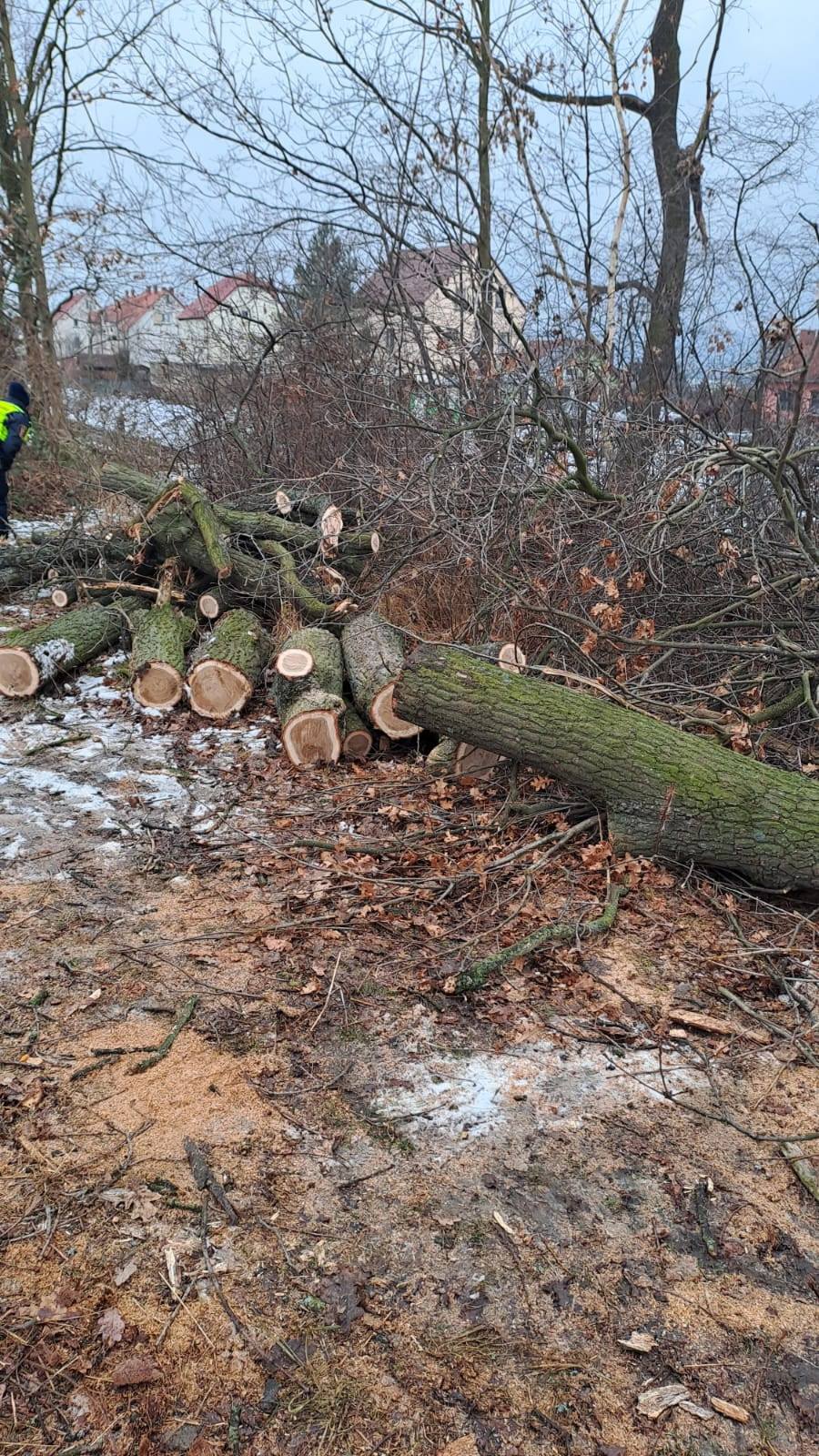 Dyżurny jednostki otrzymał wcześniej zgłoszenie od mieszkańca, który poinformował o odgłosach pracującej piły spalinowej dochodzących z okolic cmentarza. Ze względu na podejrzenie nielegalnego pozyskiwania drewna, funkcjonariusze Straży Miejskiej niezwłocznie podjęli interwencję.