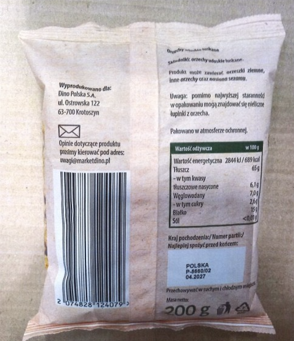 W wyniku kontroli urzędowej Państwowej Inspekcji Sanitarnej stwierdzono przekroczenie najwyższego dopuszczalnego poziomu (NDP) pozostałości pestycydu - tetrametryny we wskazanej partii orzechów włoskich.