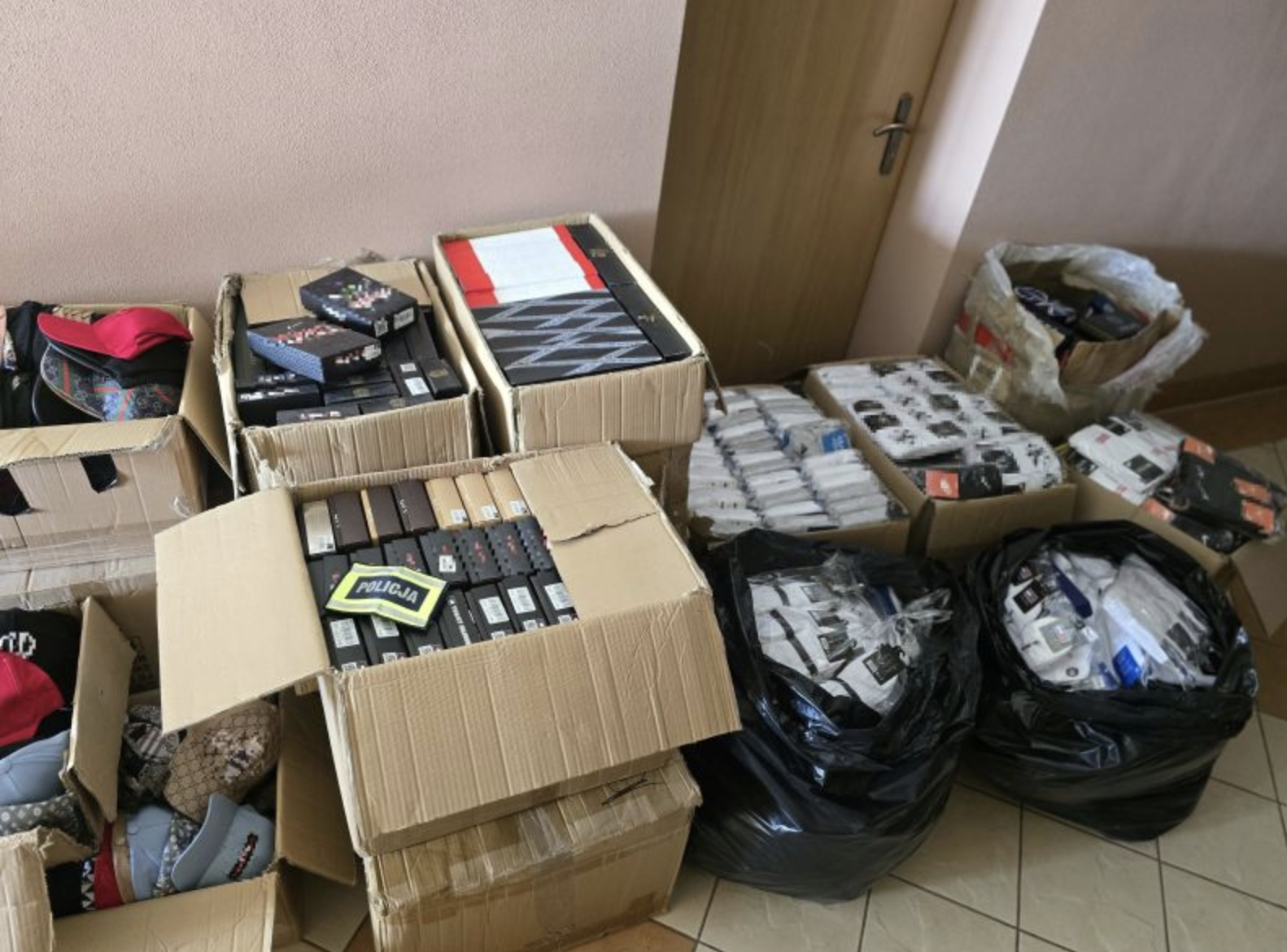 To jednak nie był koniec działań. W trakcie dalszych czynności policjanci przeszukali pomieszczenia mieszkalne zajmowane przez zatrzymanych. W ich trakcie ujawniono kolejne nielegalne papierosy, a także odzież oznaczoną podrobionymi znakami towarowymi znanych marek.