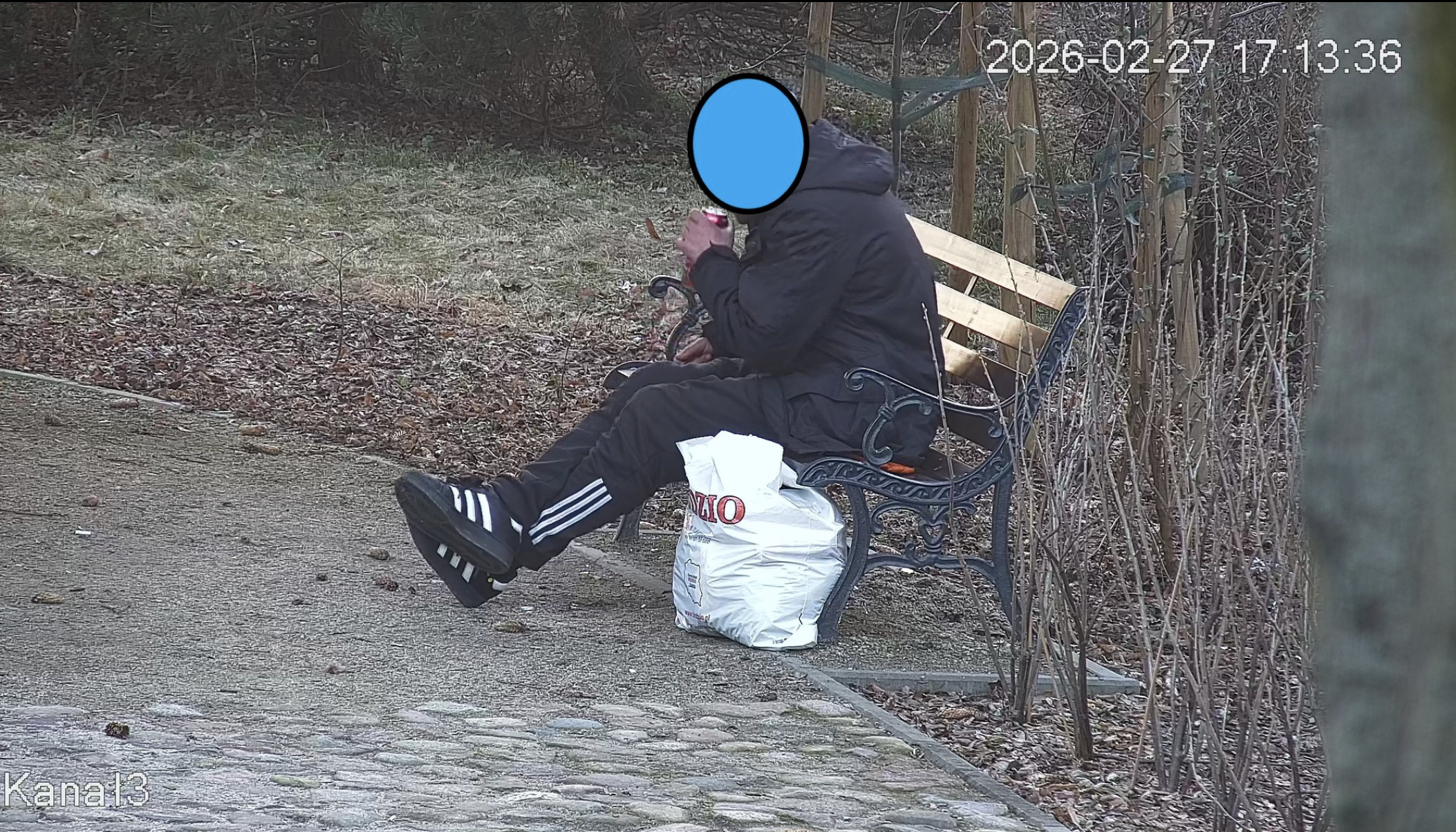 W dniu 27.02.2026 r. około godziny 17.15 przy pomocy kamery monitoringu miejskiego zaobserwowano mężczyznę spożywającego alkohol w miejscu publicznym - rejon parku sensorycznego przy ulicy Podwale.