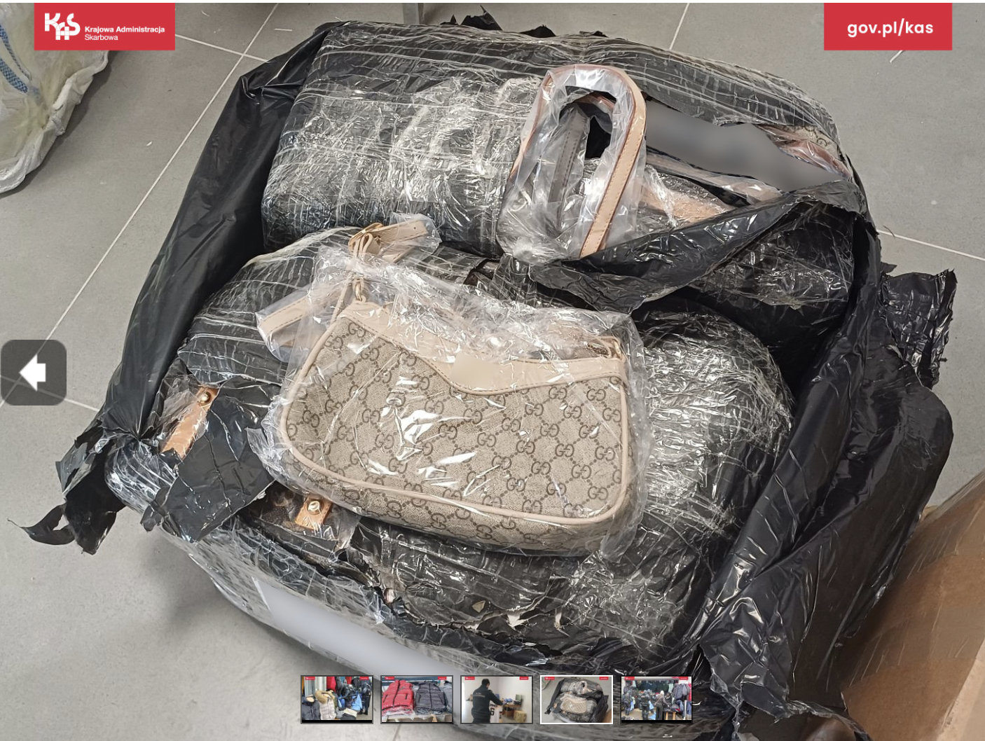 W lutym lubuscy funkcjonariusze SCS przeprowadzili kontrole w sortowniach paczek w Gorzowie Wlkp. Weryfikacja przesyłek była prowadzona pod kątem nielegalnego obrotu odzieżą oznaczoną podrobionymi znakami towarowymi. W podejrzanych paczkach znajdowały się bezrękawniki i torebki z logami znanych marek oraz koszulki opatrzone logiem znanych klubów sportowych. Funkcjonariusze SCS ustalili, że zatrzymany towar został nielegalnie opatrzony znakami towarowymi firm objętych ochroną praw własności intelektualnej. Zabezpieczono 281 szt. odzieży i torebek. Szacunkowa wartość ich oryginalnych odpowiedników to ponad 507 tys. zł.
