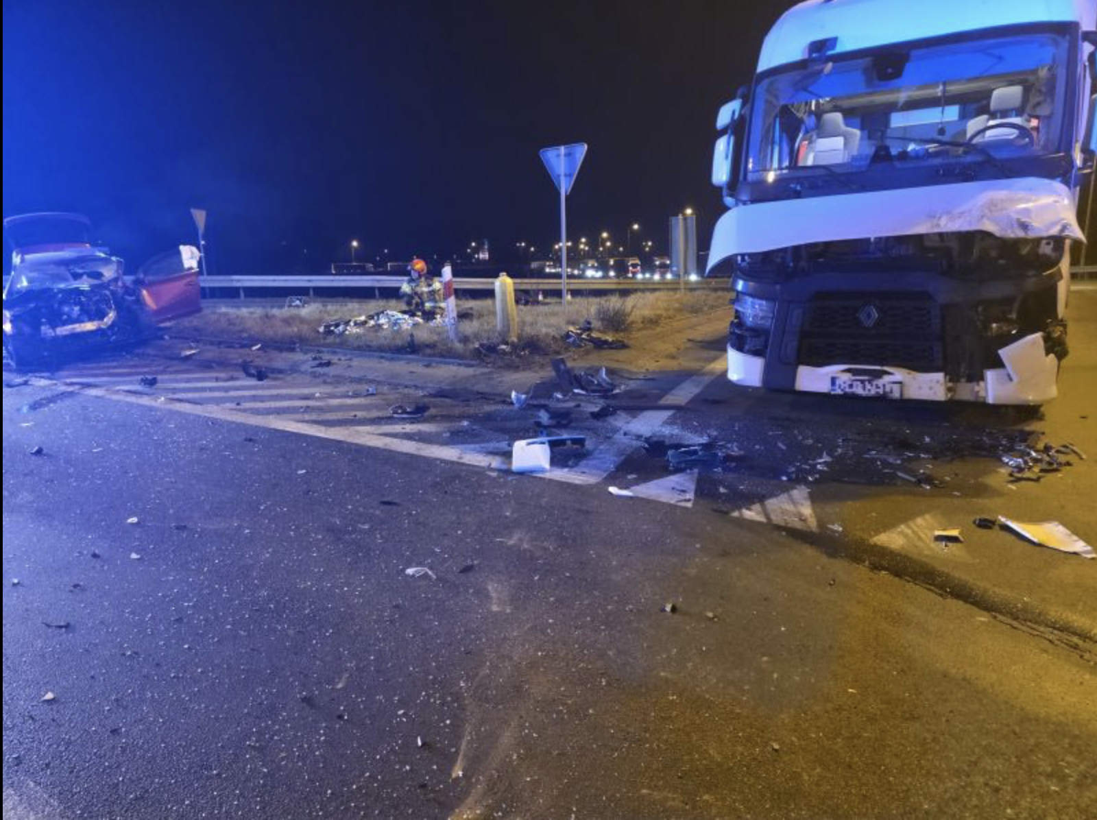 Jak wynika ze wstępnych ustaleń 37-letni kierujący pojazdem marki Isuzu nie ustąpił pierwszeństwa przejazdu 19-letniemu kierującemu pojazdem marki Audi. W wyniku zderzenia audi uderzyło w oczekujący na włączenie się do ruchu pojazd ciężarowy marki Renault.