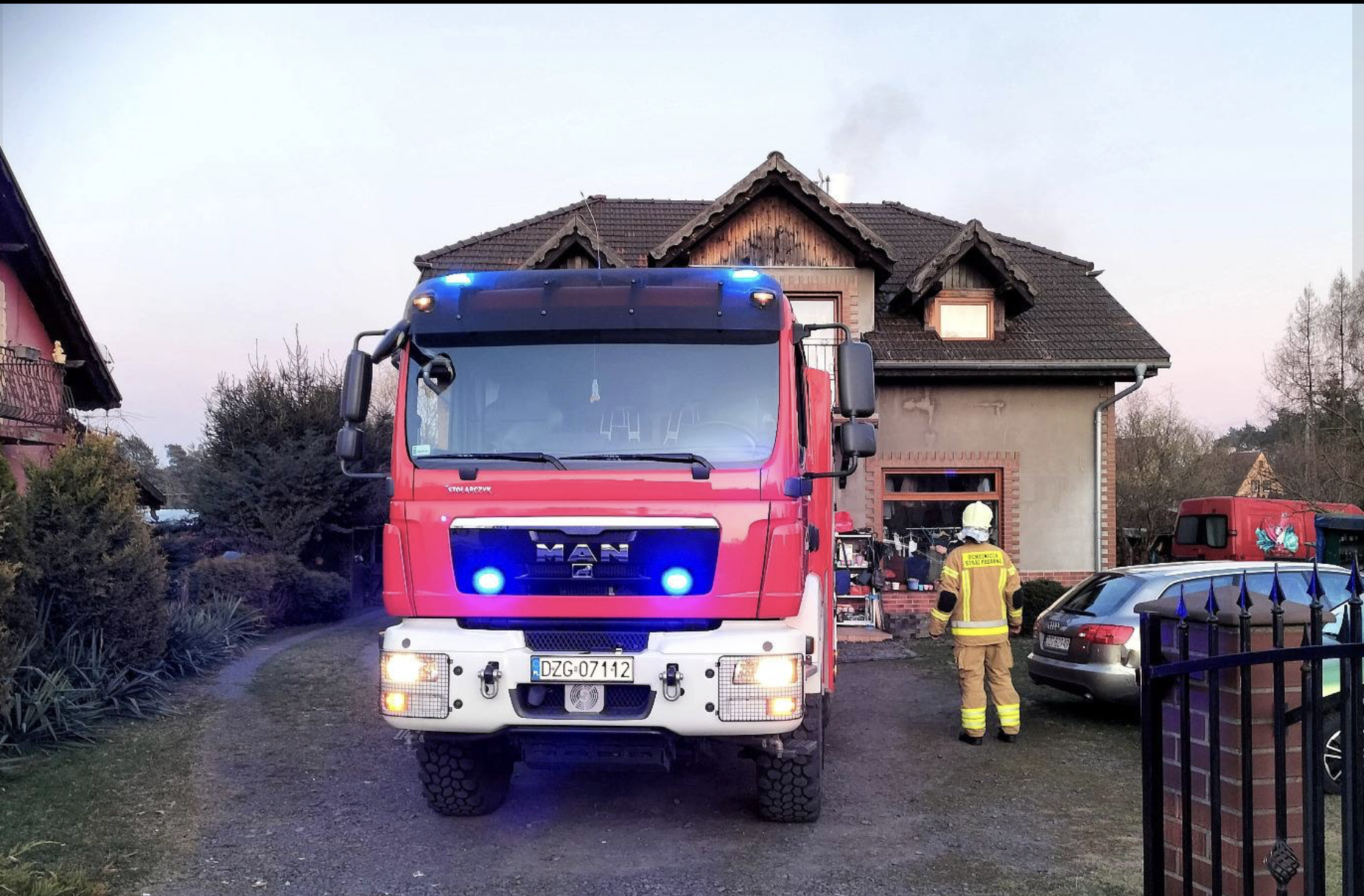 Po przybyciu na miejsce strażacy natychmiast przystąpili do działań. W pierwszej kolejności sprawdzono obecność tlenek węgla w pomieszczeniach mieszkalnych, aby wykluczyć ryzyko zatrucia. Następnie wygaszono palenisko, co pozwoliło ograniczyć dalszy rozwój zagrożenia.